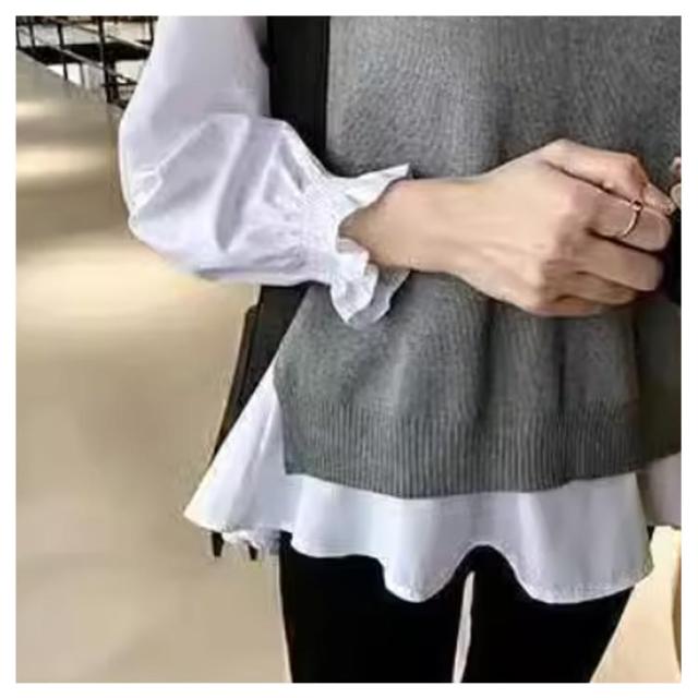 | 「大人カジュアル」 ブラウス+ベスト2点セット 可愛いデザインで春から秋まで着こなせ♪ お尻までしっかりカバーできる丈感です。 フレアふんわりンャツブラウスは単品でも活躍できる! | |