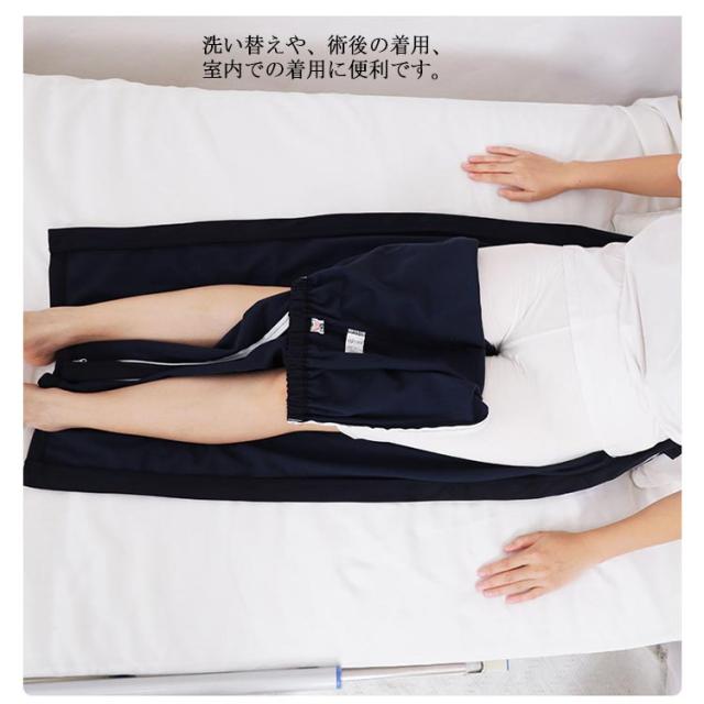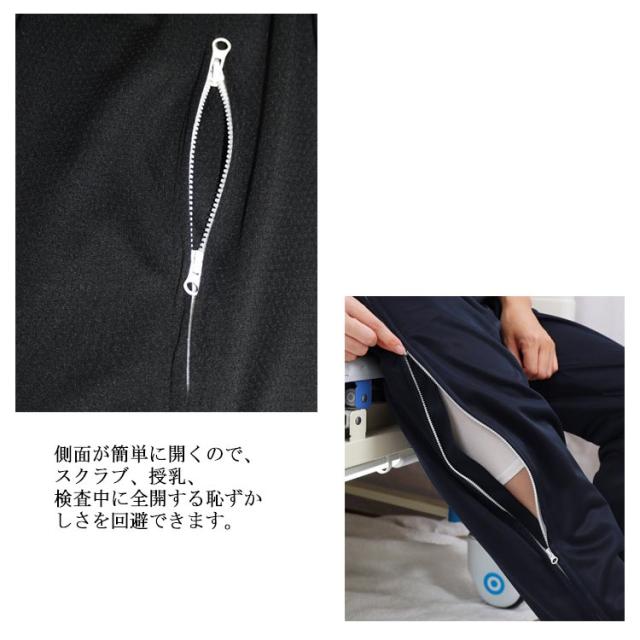 | 入院中に不便な行動をとる人向けにデザインの入院用ズボン。 オールシーズン対応の2タイプ生地ですので、四季を選ばず着用可能です。 両脇腰の部分から裾口までファスナーが付き脱ぎ履きが簡単♪ 側面が簡単に開くので、スクラブ、授乳、検査中に全開する恥ずかしさを回避できます。 洗い替えや、術後の着用、室内での着用に便利です。 | |