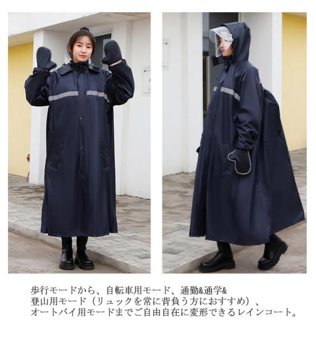自転車 レディース バイク ロング丈 リュック対応 着脱式 メンズ 雨具 登山 レインバイザー付き アウトドア 梅雨対策 レインウエア 釣り リュック対応 男女兼用 一体式防水手袋付き