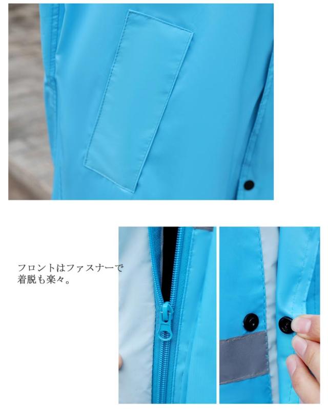 | 歩行モードから、自転車用モード、通勤&通学&登山用モード(リュックを常に背負う方におすすめ)、オートバイ用モードまでご自由自在に変形できるレインコート。 視界良好の大き目の二重バイザーで、120°の角度で自由に調整でき、大雨のときに女性の方でも化粧崩れません。 フロントはファスナーで着脱も楽々。 防水手袋付き、雨の侵入が防げます。 反射帯付きで車などからの視認性も高まり、安心安全にご利用いただけます。 男女を問わず、どんな方にもご利用いただけるレインウェア。 通勤、通学、散歩、アウトドア、釣りなどの場合に最適です。 | |