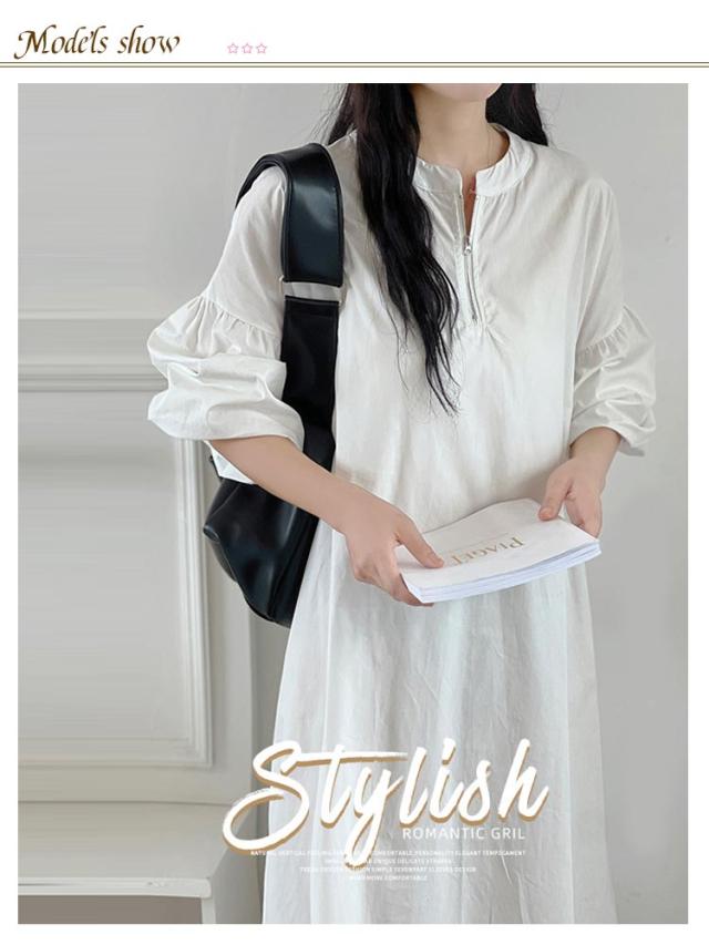 ロング ロングワンピース マキシ ワンピース ロング丈 丈 ロングワンピ ハーフジップワンピース ワイドサイズ ボリューム袖 ゆったり ワンピ レディース 長袖 春 秋 Aライン ワンピース カジュアル 無地 大人