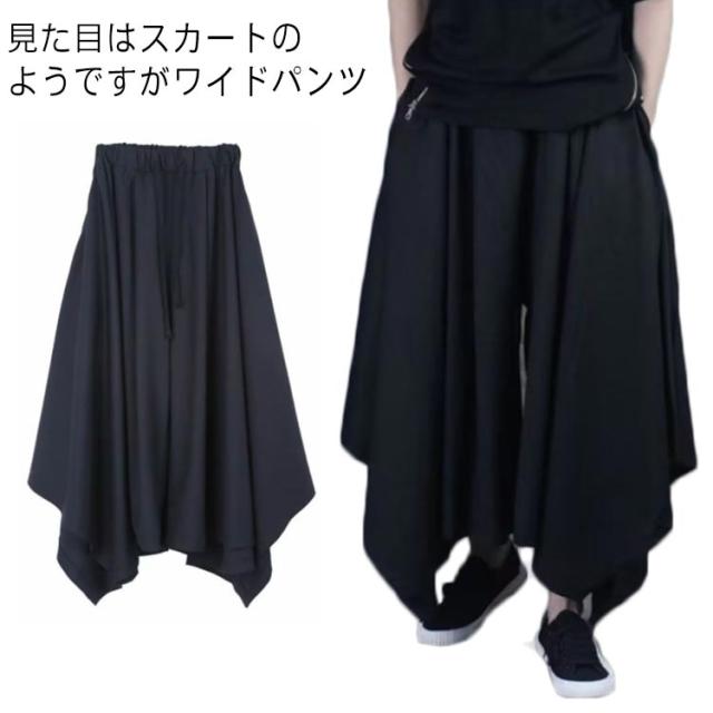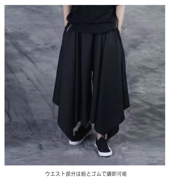 バギーパンツ ブラック メンズ 送料無料 パンツ 黒 モード系 ウエストゴム キャロットスカート ドレープスカート 袴パンツ モード メンズ ワイドパンツ レディース 男女兼用 大きいサイズ ファッション バギーパンツ サルエル パンツ ガウチョ プリーツ
