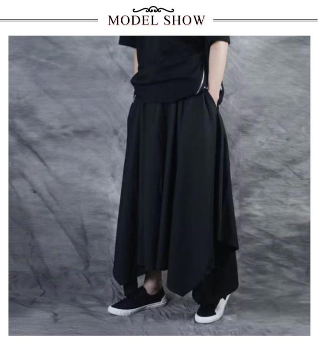 | 見た目はスカートのようですがワイドパンツ メンズ・レディース問わず誰でも着用可能 ウエスト部分は紐とゴムで調節可能 両サイドにポケットがついている | |