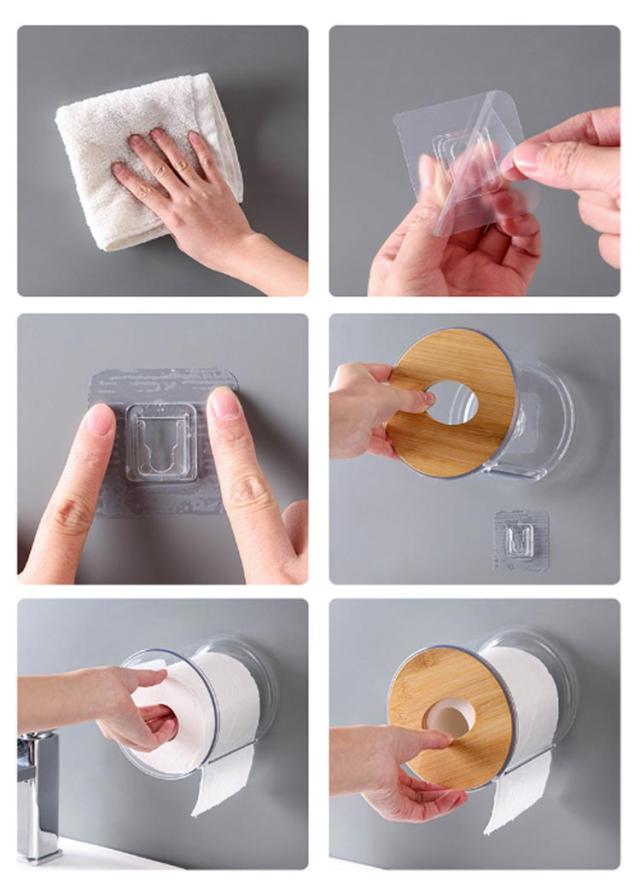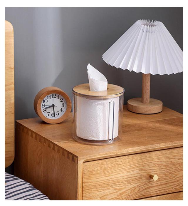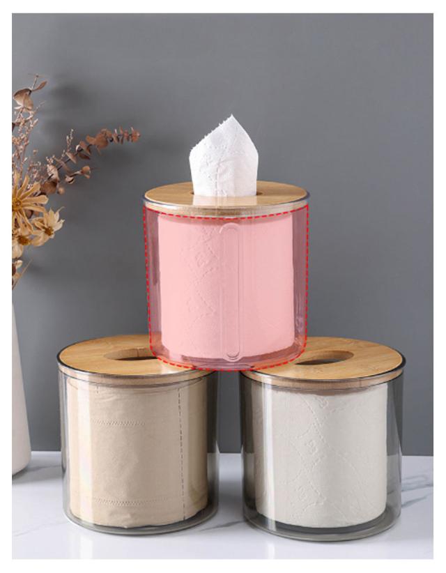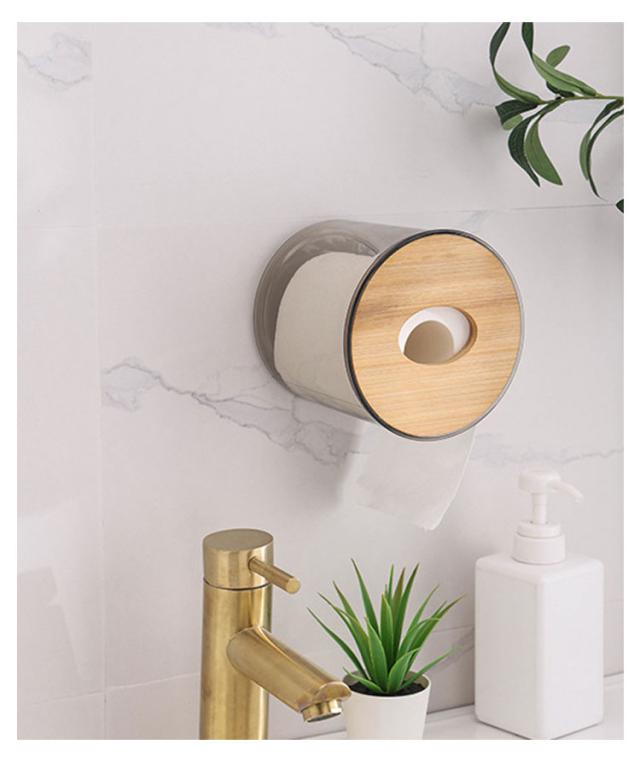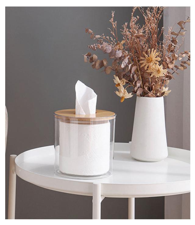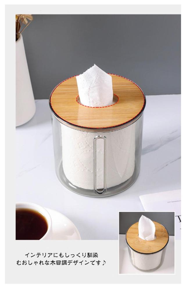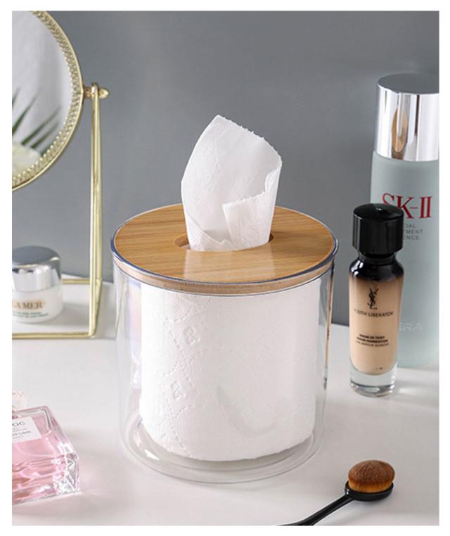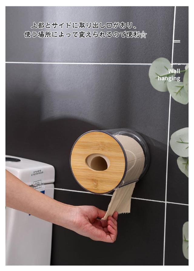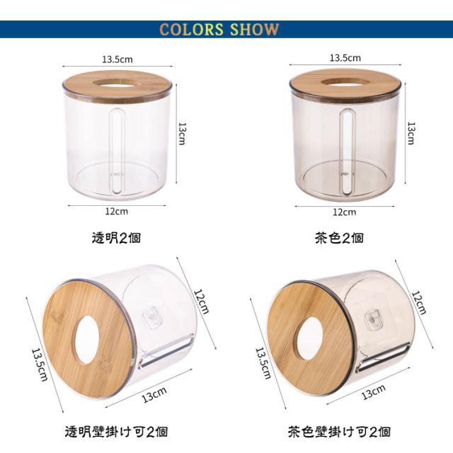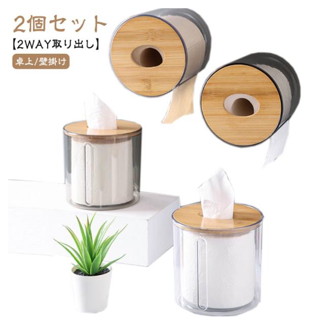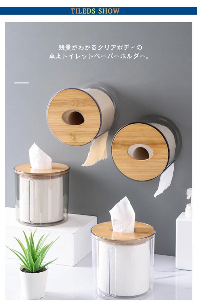 【2個セット】トイレットペーパーホルダー 竹製蓋 卓上/壁掛け トイレットペーパーケース ティッシュケース 円形 クリア 透明 ロールペーパーホルダー おしゃれ ペーパーホルダー ボックス カバー 収納 トイレ用品 ナチュラル インテリア