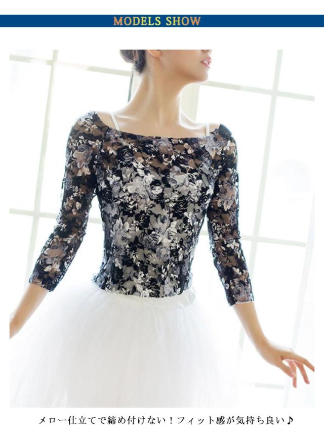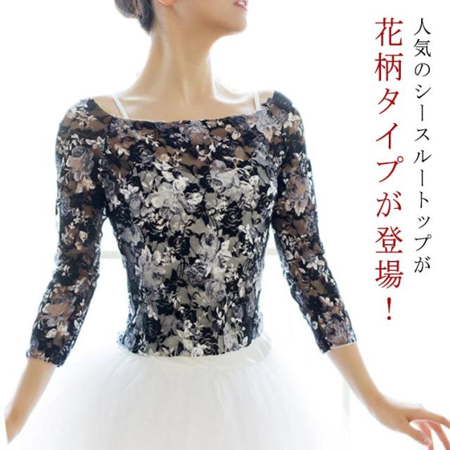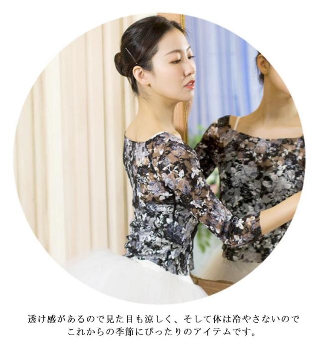 バレエ 服 花柄 シアートップス 透け感 バレエ レディース チュールネット 七分袖 シースルー トップス 可愛い ダンス レッスン 練習着 ストレッチ 伸縮 カバー 伸縮性あり 総柄 ダンス衣装 きれいめ 冷え対策 大人 女性 送料無料