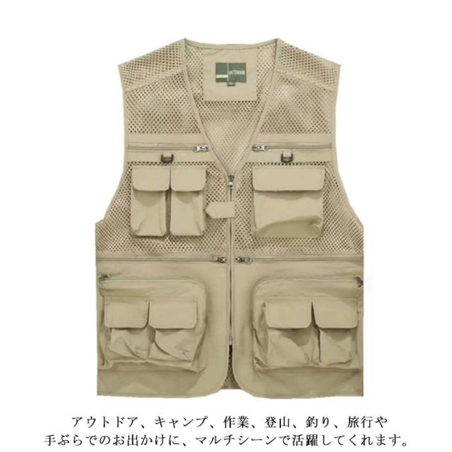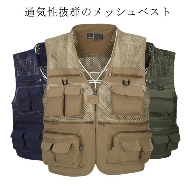 メッシュベスト ベスト メンズ ベスト 通気 作業着 夏 アウトドア 軽量 春夏 速乾 多機能 フィッシングベスト お釣り 撮影 山歩き 紳士服 お釣り メッシュベスト 大きいサイズ 登山服 ミリタリー 前開き 重ね着 父の日 ギフト