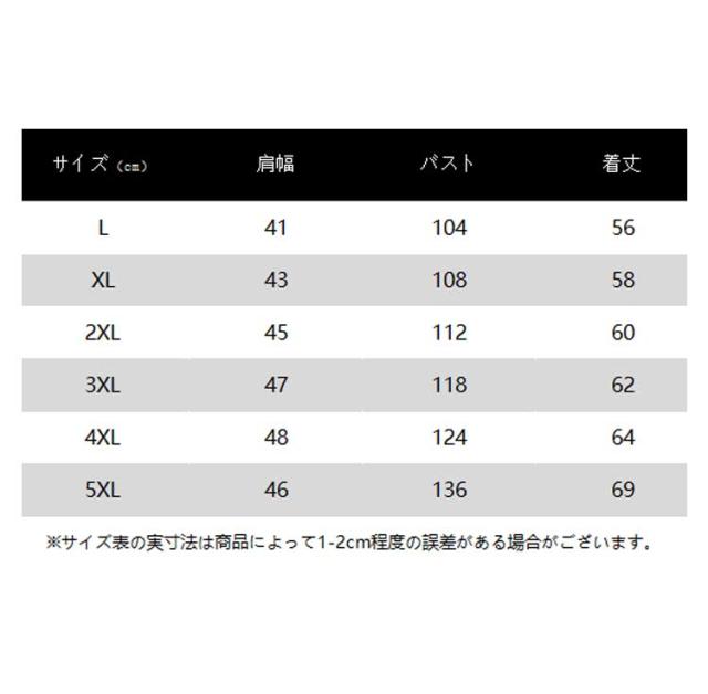 | サイズ | L XL 2XL 3XL 4XL 5XL |