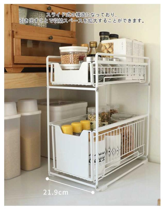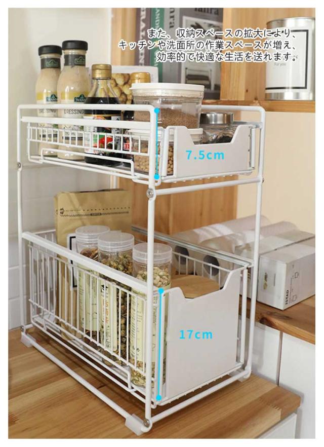 | キッチンや洗面所などのシンク下のスペースを有効活用するために設計されています。 スライド式の構造になっており、引き出すことで収納スペースを拡大することができます。 耐久性に優れた素材を使用しているため、重い物を収納しても安心です。 取り付けも簡単で、特別な工具を必要としません。誰でも簡単に設置することができます。 このスライドラックを使用することで、シンク下のスペースを有効活用し、整理整頓されたキッチンや洗面所を実現することができます。 また、収納スペースの拡大により、キッチンや洗面所の作業スペースが増え、効率的で快適な生活を送れます。 | |
