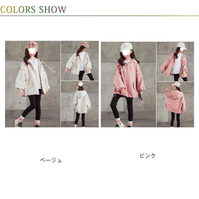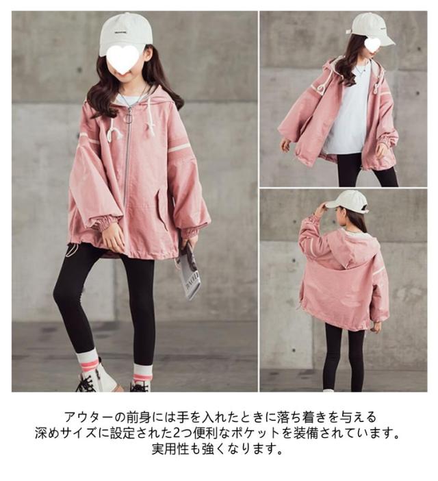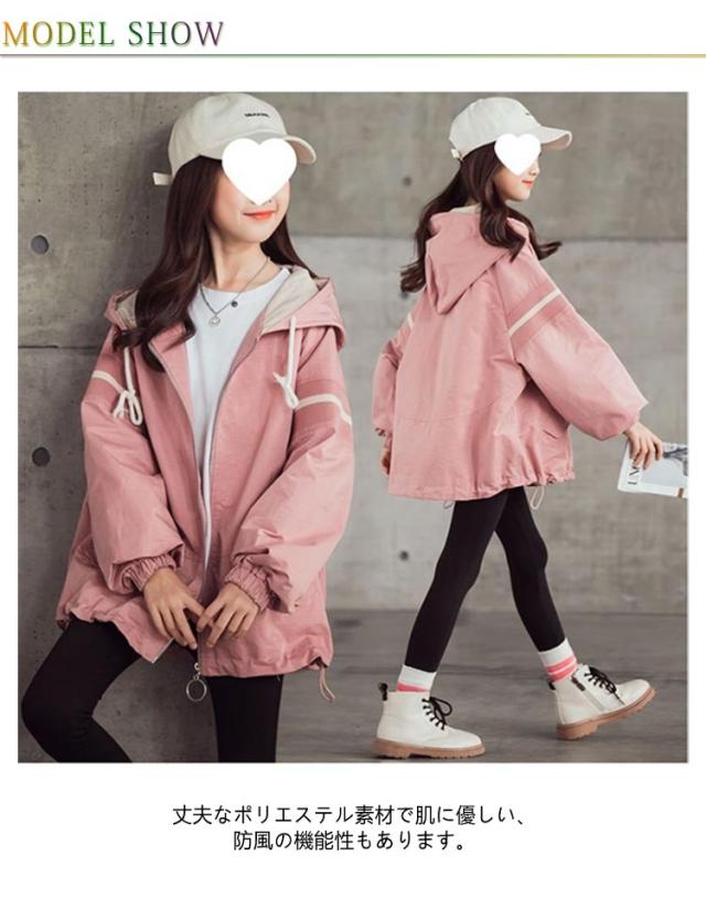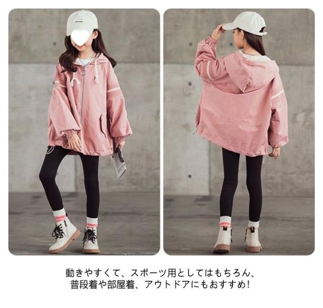 スプリングコート 160 アウター キッズ ジャケット トップス ウィンドブレーカー 女の子 女の子 春 ジップアップ マウンテンパーカー 長袖 春秋 防風 フード付き 薄手 秋物 お洒落 ブルゾン ガールズ カジュアル 送料無料 春 秋 120 130 140 150