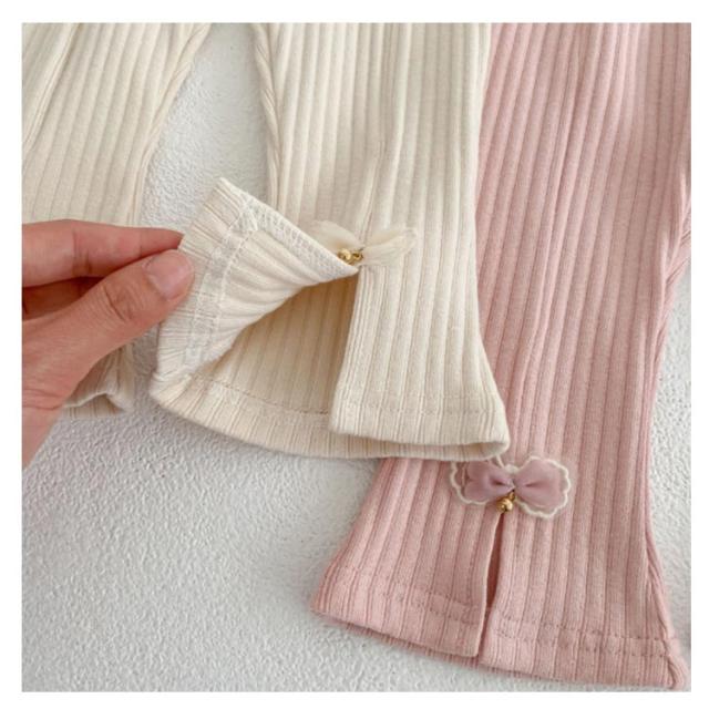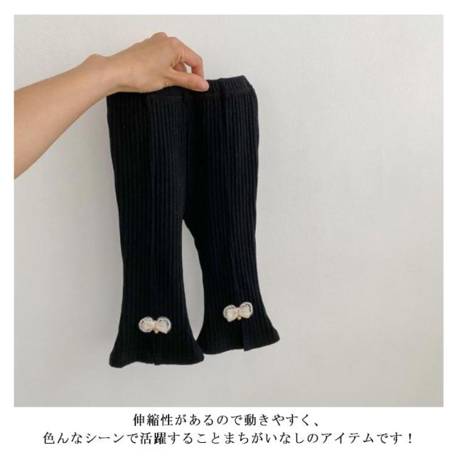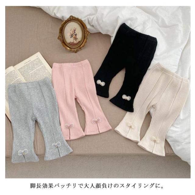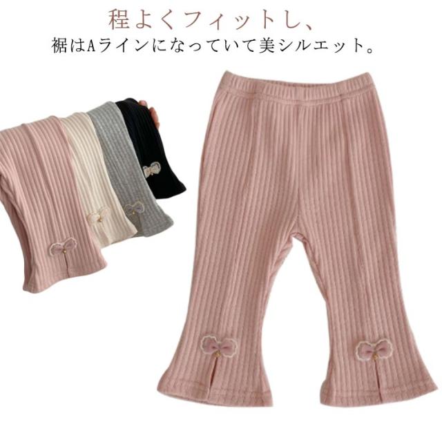 フレアパンツ リブレギンス スリム リブパンツ ロングパンツ ベビー フレアパンツ キッズ服 ベビー服 長ズボン 伸縮性 子供服 無地 スリット入り レギンス 可愛い Aライン 美脚 ストレッチ 韓国ファッション ウエストゴム 66 73 80 90