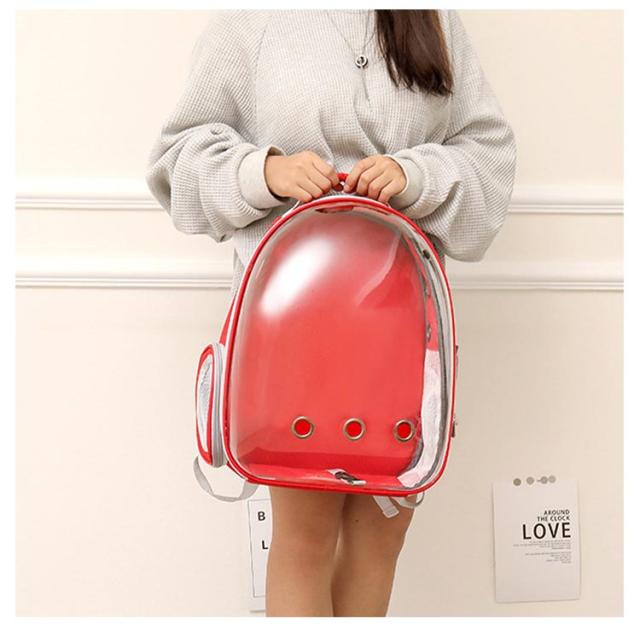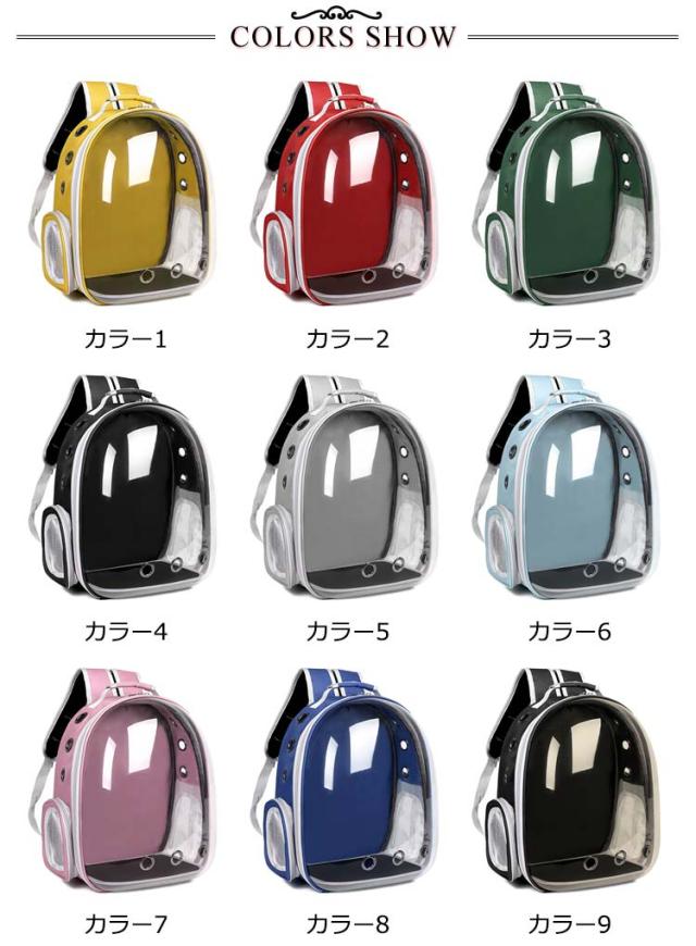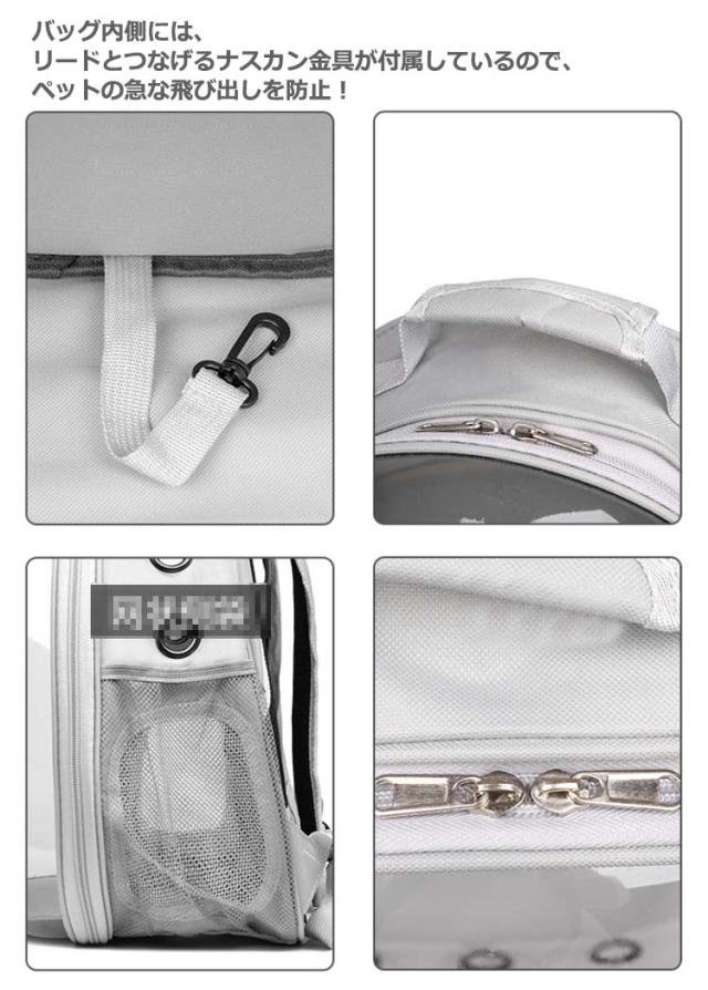 | 大きい窓で開放感◎リュックキャリー。 両手が自由に使えるリュック型キャリーバッグ。 立体的なドーム型の全面アクリル窓タイプ、見た目もオシャレにペットとお出かけ! ペットが安心して過ごせる空間を作るため、あらゆる面からの通気性を確保してくれます。 カラビナで首輪やハーネスに簡単に取り付け、飛び出しを防止し安全安心に使えます。 リュック正面のファスナー窓からペットの出入りがスムーズ。 左側面のメッシュ小窓のファスナーは、外出先でおやつをあげたり、ネコちゃんの頭を撫でで安心させてあげたいときに大活躍。 持ち手付き、さっと手持ちでの移動もできるのがうれしい! | |