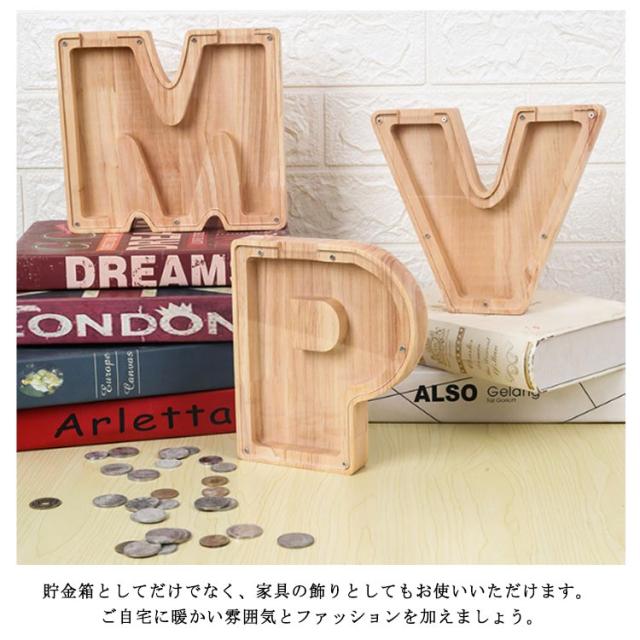 木製 レター貯金箱 アルファベットレター レター貯金箱 A-Z 貯金箱 組み合わせ自由 コインバンク 厚手 子供用貯金箱 貯金箱 コイン ナチュラル
