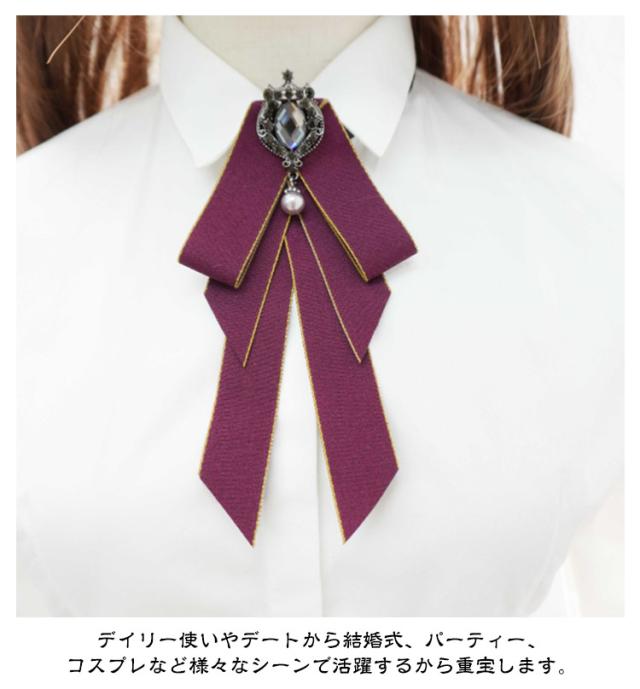| 全14色!高級感のあるビジューを付けたゴージャスなリボンブローチ。 首元に飾れば一気にクラシカルな雰囲気に! シャツやワンピース、ニットなど色々なアイテムと合わせやすく、メリハリのある上品スタイル完成。 デイリー使いやデートから結婚式、パーティー、コスプレなど様々なシーンで活躍するから重宝します。 | |