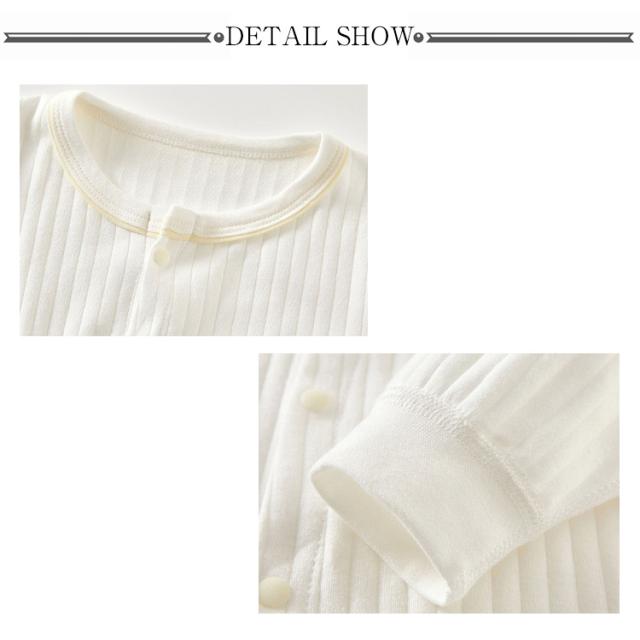 | 59~90cm!ナチュラルなデザインが可愛いロンパースです☆ 股の部分はスナップボタン付きで大きく開くのでおむつ替えも簡単 ゆったりめのサイズ感だからお子様の動きを妨げずストレスフリー! 通気性と肌触りがいい綿混紡素材なので保温性があり秋冬シーズンは暖かく過ごせます。お手持ちのインナーと合わせてロングシーズン楽しめます。 | |