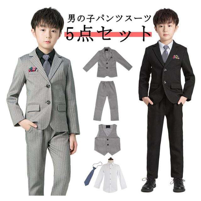 フォーマル ズボン ブラック 男の子 ベスト 5点セット お受験 蝶ネクタイ スーツ 卒業式 ボーイズ フォーマルスーツ キッズ 入学式 スリム ピアノ シャツ 男児 上下セット ネイビー 七五三 細身 子供 発表会 入園式 子供 結婚式 卒園式 冠婚葬祭 春 秋