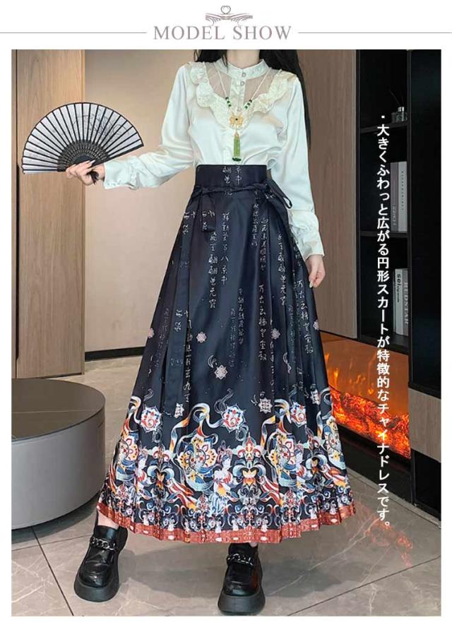 フェミニン 巻きスカート レディース フレアスカート 中華風 ロング丈 ラップスカート プリーツスカート ラップスカート チャイナ服 オリジナル ボトムス チャイナ風 タック ガーリー おしゃれ 春
