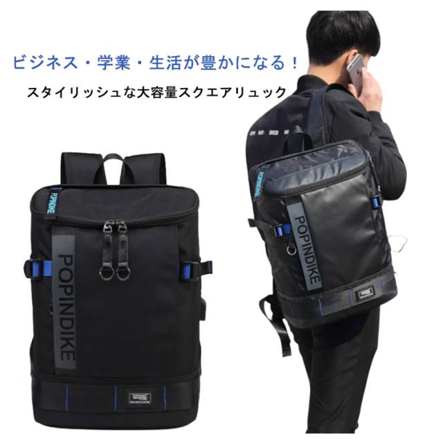 中高生 大容量 リュック カジュアル ボックス型 撥水 バックパック ブラック USBポート付き 15.6インチPC収納 スクエアリュック キッズ バックパック 大学生 A4サイズ 通勤 通学 部活 旅行 アウトドア お出かけ
