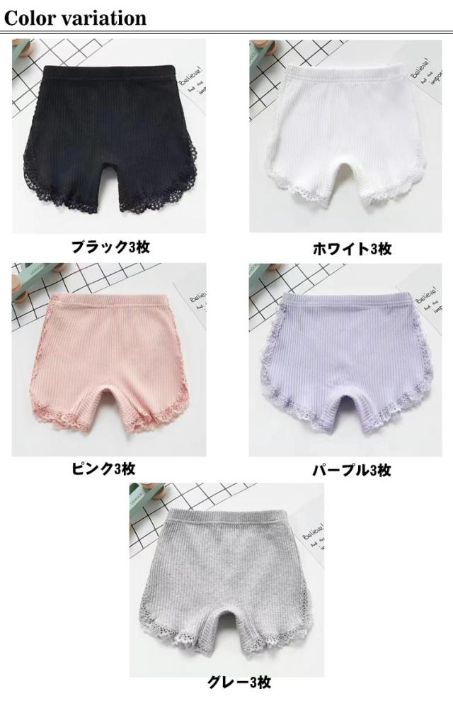 インナーパンツ 【3枚組】オーバーパンツ スパッツ ペチパンツ 【3枚組】オーバーパンツ 子供 1分丈 スパッツ レギンス パンツ キッズ 女の子 ベビー服 ストレッチ 幼稚園 アンダーパンツ レース 無地 小学生 ペチコート ショートレギンス 伸縮 通気性 夏