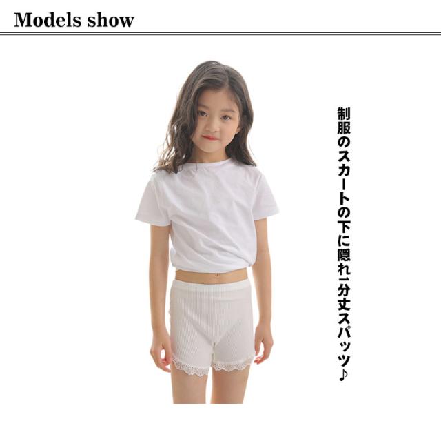 | 【3枚組】【100〜160cm】【1分丈スパッツ】 制服のスカートの下に隠れ1分丈スパッツ♪ 何回洗濯しても色落ち、型崩れない!窮屈さやムレはなく、とっても快適な履き心地〜 レース裾のデザインで、ガーリー度たっぷり! 良質なコットン素材で、柔らかくて通気性があり、締め付け感もなく、着心地抜群! 通園・通学用のインナーとしておすすめです★ | |
