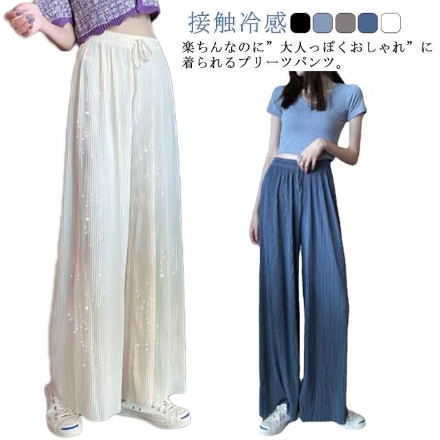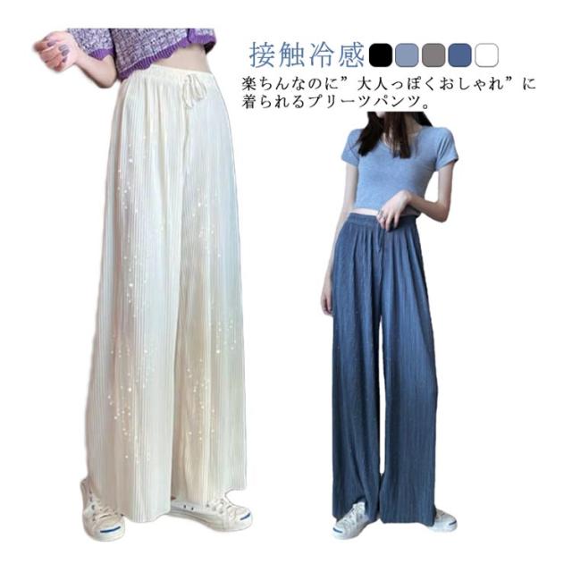 パンツ レディース 春 パンツ ワイドパンツ 春 春ワイドパンツ ボトムス ハイウエスト 涼しい 接触冷感 切れるパンツ 縦ライン 高見え 部屋着 ストレッチパンツ きれいめ シンプル 美脚 大人 女性用 おしゃれ 大学生 おでかけ