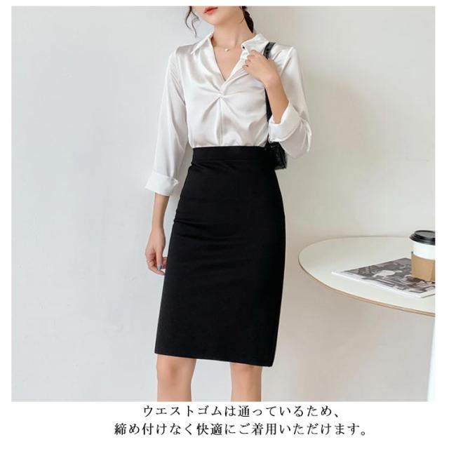 秋 ブラック ストレッチ レディース タイトスカート スカート 事務服 ウエストゴム オフィス OL フォーマルスカート オフィス ビジネス ボトム 洗える 大きいサイズ 制服 通勤 セレモニー 春 夏 スリット 冬 オールシーズン オフィス 50cm 60cm