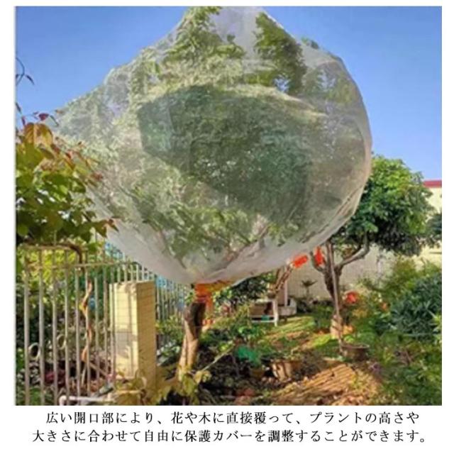 | メッシュ式に作成されており、通気性や耐久性に優れています。耐熱、耐寒、低熱吸収性があって、低直射日光強度という優れた特性を備えて、繰り返し使うことができてます。 PE素材で作らて、環境に優しい、通気性に優れた、耐久性があります、繰り返し使うことができます。長期間使用しても損傷しない。 果樹栽培には必須!鳥、ウサギ、その他の虫による噛み付きから植物を保護します。恐ろしい天気から大切な花木を守ります。 透気生地は植物が窒息しているか、あるいは光合成を妨げることはありません。 花、野菜、観葉植物や鉢植えなどの植物に覆い。 広い開口部により、花や木に直接覆って、プラントの高さや大きさに合わせて自由に保護カバーを調整することができます。 | |