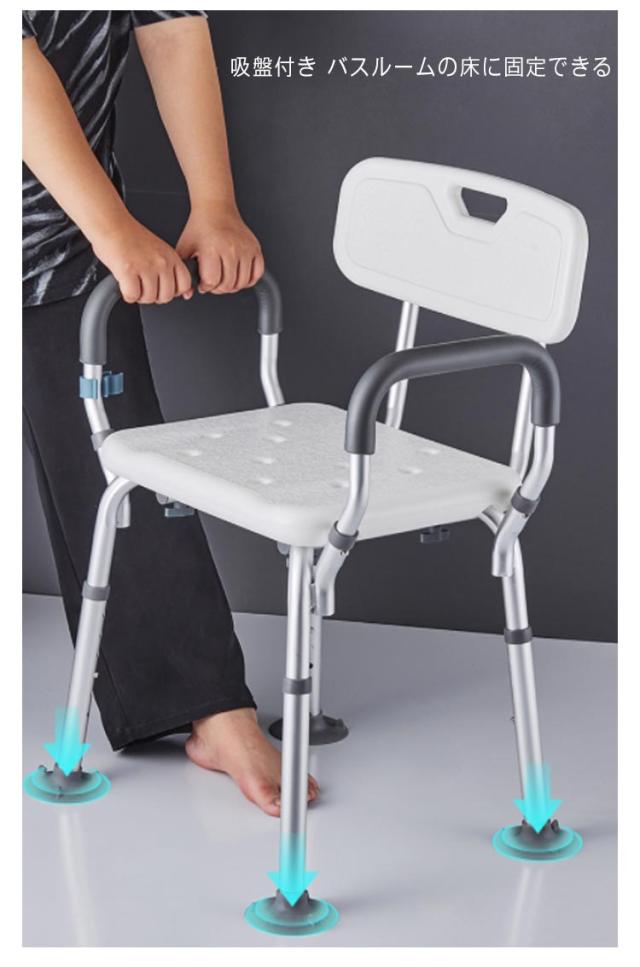 シャワーチェア 浴室 バスチェア 椅子 風呂椅子 背もたれ 背付き 吸盤 介護用 バスチェア 風呂イス 風呂いす 入浴介護 立ち上がり補助 6段階高さ 調節可能 ふろ いす シャワーチェアー