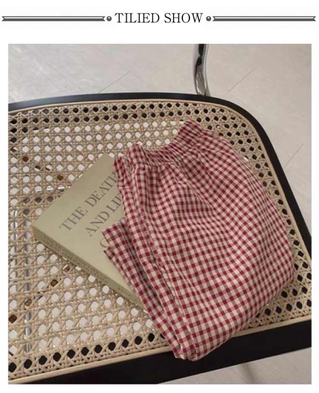 | レッドチェック柄で可愛く お部屋でのんびりリラックス お部屋でのリラックスタイムはもちろん、リモート飲みや女子会でお揃いで着てもかわいいシンプルデザイン。 薄手で程よい厚みの生地感なので、気温を把握しにくい旅行にも | |