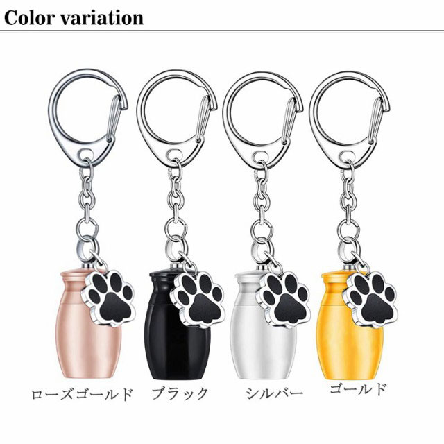 | 大切なペットの手元供養ができる骨壷キーホルダーです。 ご遺骨や遺毛や爪を納めて大切なアクセサリーとして身につければ、どんなときでもそばで温かく見守ってくれます。 丈夫で錆びにくいステンレス素材を使用しているので、湿気や汗に強くお風呂場やプールサイド、ジムなどに持ち込むことができます。 小さくても重厚感があり、ずっと身につけていたくなる可愛らしいキーホルダーです。 ※パッキンはありませんので完全防水ではありません。 | |