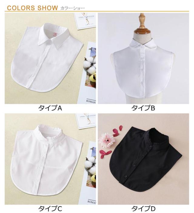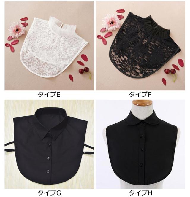 | 全20タイプ!シンプルなシャツカラーのレディース用付け襟です。 いつものトップスに重ねるだけで、レイヤード風のコーディネートが即完成。 コーディネートの幅が広がっておしゃれが楽しくなるイチオシアイテム! 深めVネックニットなど胸元の開きが気になるシーンでもプラスするだけで安心です。 フォーマルな服装が求められるシーンでもきちんとした印象を与えてくれます | |