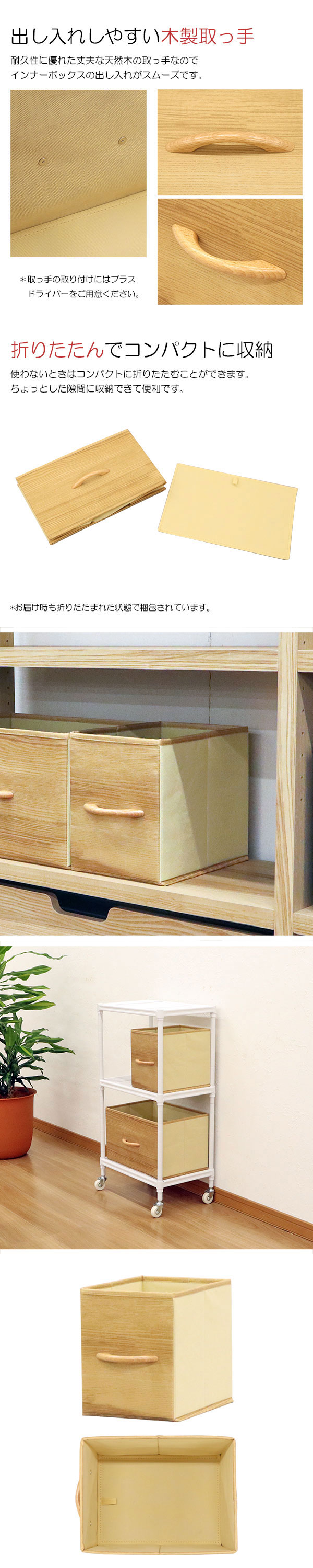 耐久性に優れた丈夫な木製取っ手なのでインナーボックスの出し入れがスムーズ
