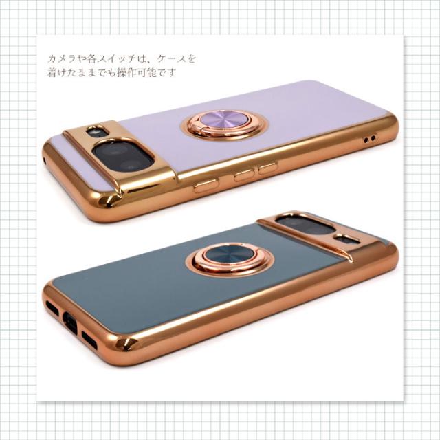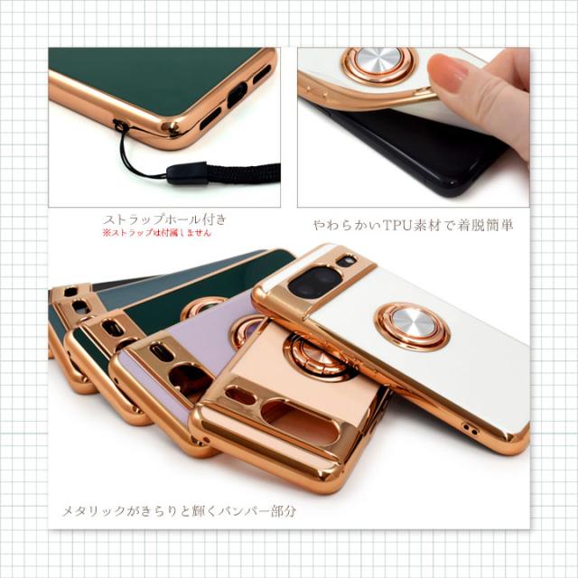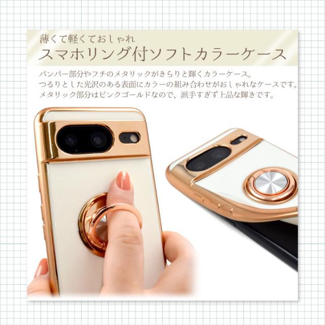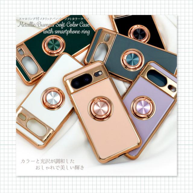 GooglePixel8 スマホリング付メタリックバンパーソフトカラーケース ホワイト ピンク グレー パープル グリーン ブラック メール便送料無料