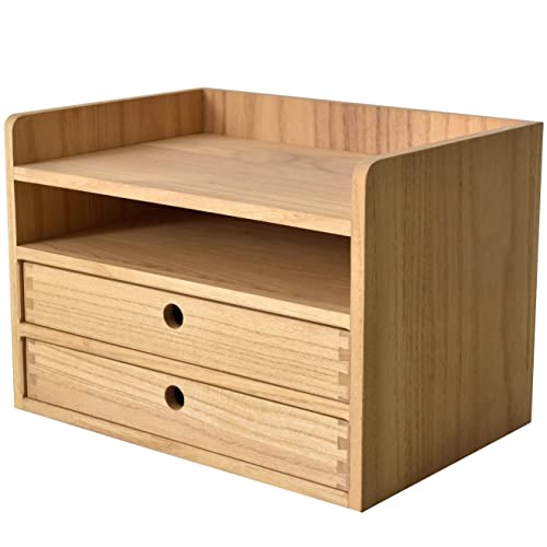 KIRIGEN デスク上置棚 引出し 木製 レターケース 書類 トレー 書類 収納 小物 収納 チェスト蟻組構造 完成品 ナチュラル