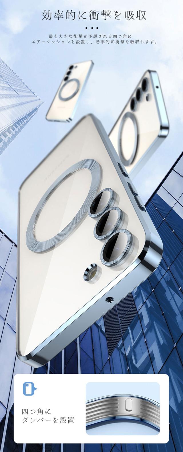 | ・高透過率 ケース背面は透明になっておりGalaxy本来の美しいカラーを楽しめます。 ・メッキ加工仕上げ フレームはメッキ加工処理を使用して、繊細かつ洗練された高光沢仕上げを実現しています。 ・軽量&極薄 装着してもほとんど厚み・重みが変わらず、コンパクトなまま使用できます。 ・防塵仕様 ケースのスピーカー部分は細かい穴が設計で、埃の侵入も防ぎます。 ・精密なカットアウト ケースを装着しても充電・イヤホン端子等の接続に支障がありません。 ワイヤレス充電(Qi充電)に対応していません。 |