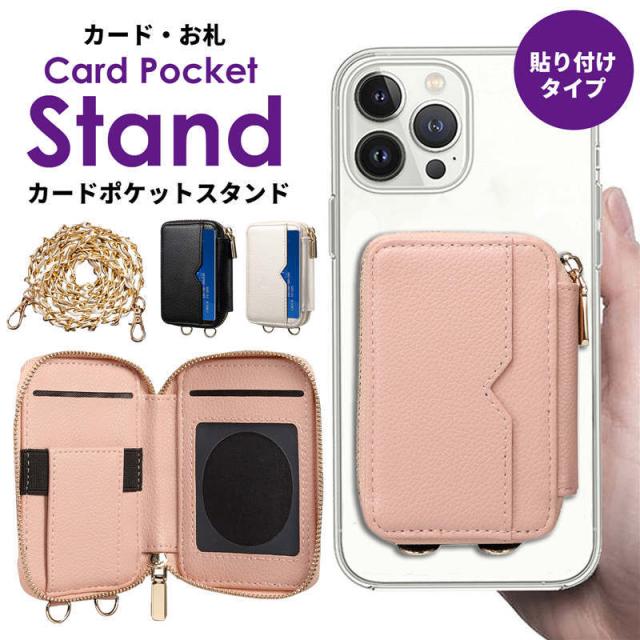 【ショルダーストラップ】貼り付け カードケース ミニ財布 スマホショルダー おしゃれ スマホ カード収納 背面ポケット スマホ スタンド カードホルダー カードポケット Galaxy Xperia iPhone 貼り付け カードケース スマホケース