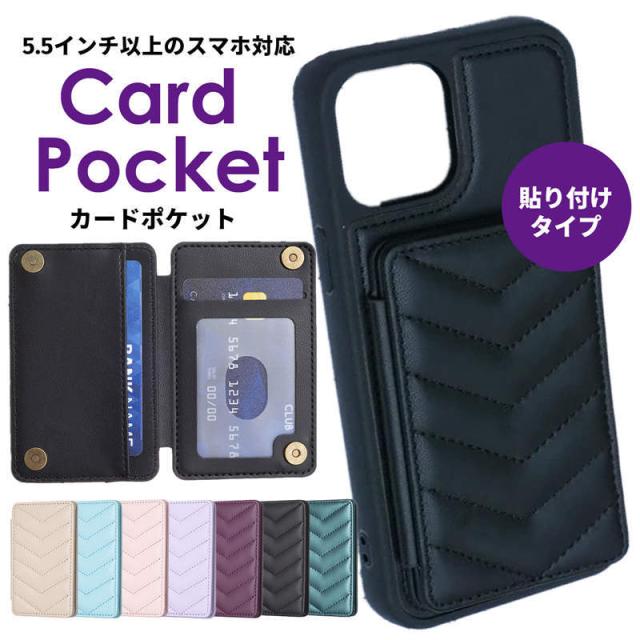【粘着タイプ】スマホ 背面 カード収納 カードケース カードポケット 貼り付け カードホルダー 貼る スマホ 背面ポケット ICカード 背面収納 スマホ カード入れ かわいい 革 iPhone Galaxy Xperia Google Xiaom 5.5インチ以上