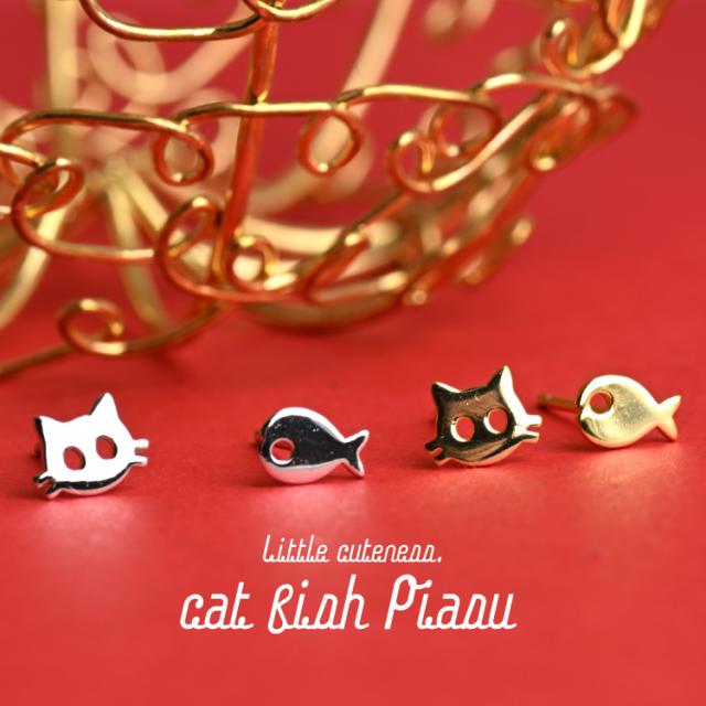 猫 ピアス ネコ レディース アクセサリー キャット ねこ 魚 モチーフ スタッドピアス 小さめ 小ぶり 耳飾り rap60997