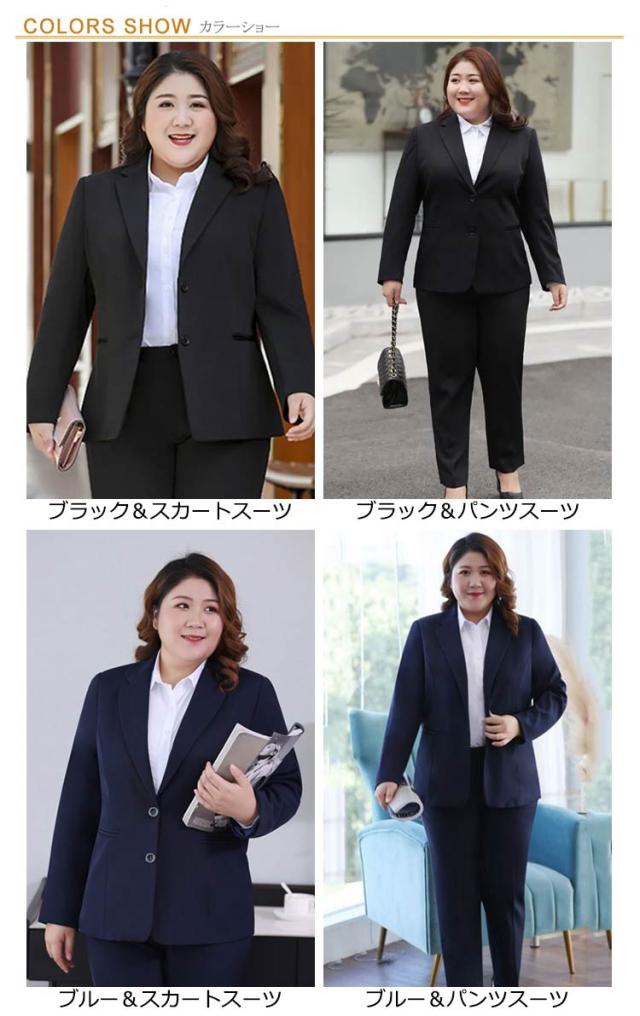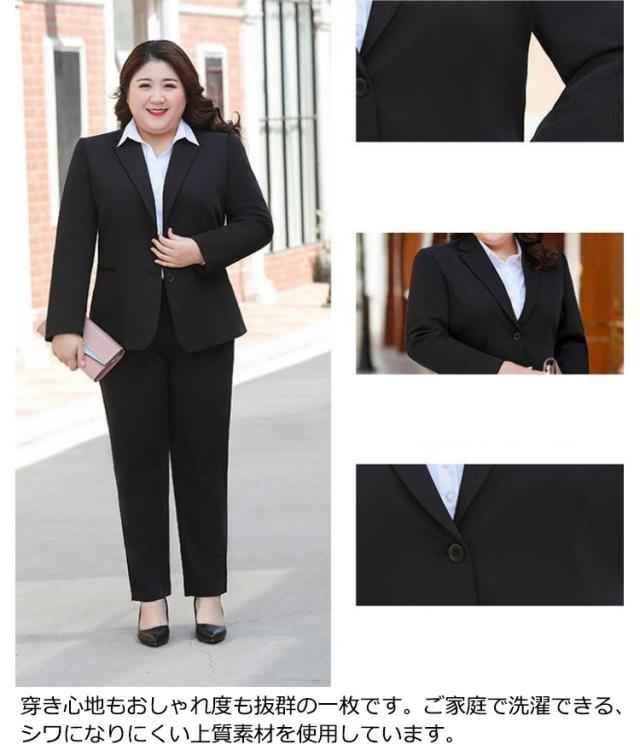 S-8XL! 2点セット 大きいサイズ ビジネススーツ レディース 洗える パンツスーツ スカートスーツ ストレッチ セットアップ 通勤 就活 OL オフィススーツ 事務服 ビジネス ジャケット ズボン 転職 結婚式 面接 卒業式 フォーマル 黒 ママスーツ ブラック 春 夏 秋