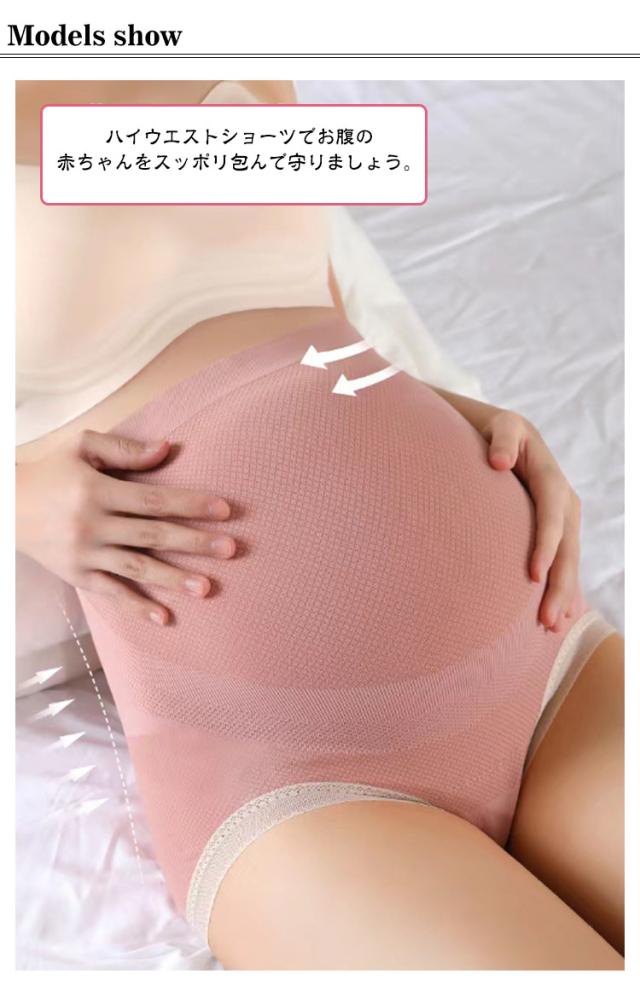 | 安心感にスッポリ包まれます! ハイウエストショーツでお腹の赤ちゃんをスッポリ包んで守りましょう。 高伸縮素材を採用し身体にフィット&締付けない加工を施しました。 お腹の冷えから赤ちゃんを守ります! お腹をスッポリ包むハイウエストなので、お腹全体ぽかぽかです! | |