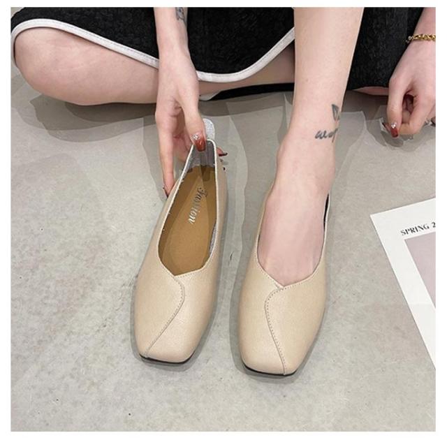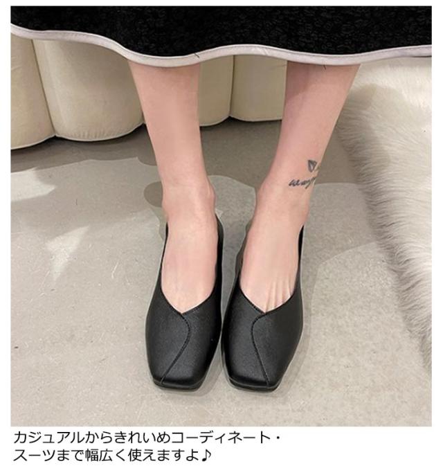 | 履き口のVカットが華奢でキレイな足元を演出。 スクエアトゥだからつま先ゆったりな履き心地で、窮屈間がなく足が痛くなりにくい! ■毎日履きたくなる快適さ ふんわりとしたやわらかい素材を使用しているので靴擦れしにくく、足が痛くならないのでストレスなく履けます♪ また、軽量設計だから長時間の使用でも疲れにくいので、ついつい毎日履いちゃう! 子どもの送り迎えなどで忙しいママにもおすすめです! カジュアルからきれいめコーディネート・スーツまで幅広く使えますよ♪ かかとを踏んでバブーシュとして履いてもおしゃれに◎ ■歩きやすいローヒール ヒールなしの1cmヒール(ペタンコ)だから、疲れにくくたくさん歩けるぺたんこ靴。 コツコツ音がしないだけでなく、安定感も抜群で走れるほどらくちんなので、ヒールが苦手な方にもおすすめです! | |