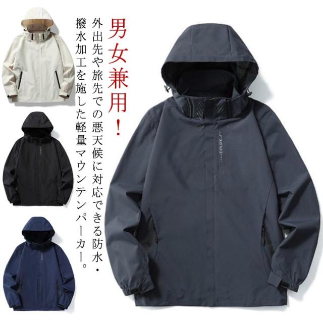ジップパーカー メンズ 男女兼用 マウンテンパーカー フード付き アウトドア マウンテンパーカー 透湿 レディース ジャケット 春服 アウター ウインドブレーカー 防水 防風 フード取り外し可 登山 春 秋 防寒 撥水 バイク キャンプ ハイキング おしゃれ ジャンパー