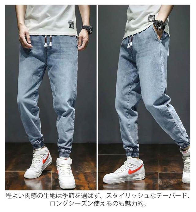 韓国ファッション テーパードパンツ デニムパンツ ズボン ジーパン ジョガーパンツ ストレッチ 美脚 脚長 きれいめ ジーンズ 九分丈 着痩せ ウエストゴム カーゴパンツ メンズ 細身 大きいサイズ スリム スポーツ デニム 春 夏 秋 春服 秋物 きれいめ 送料無料