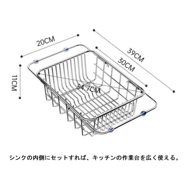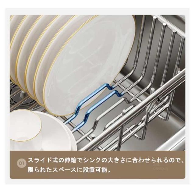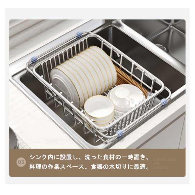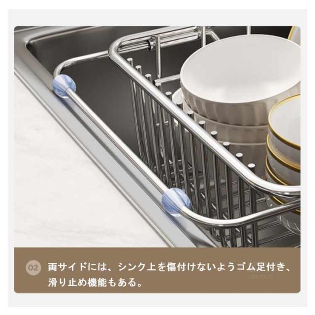 収納ラック キッチンラック ワイヤーバスケット スライド式 水切りかご 皿置き お碗収納 スライド式 水切りラック ステンレス製 シンク上 キッチン用品 台所収納 大容量 滑り止め 家庭用