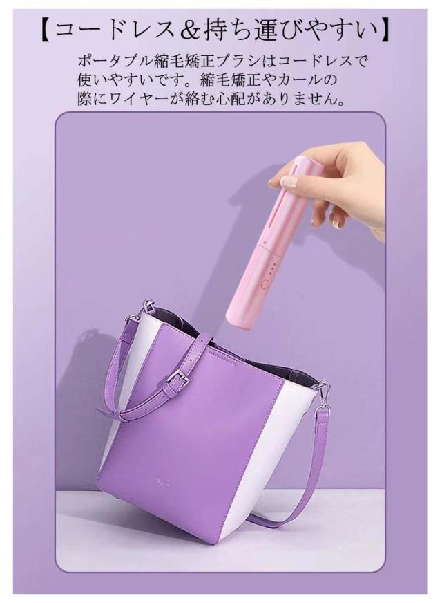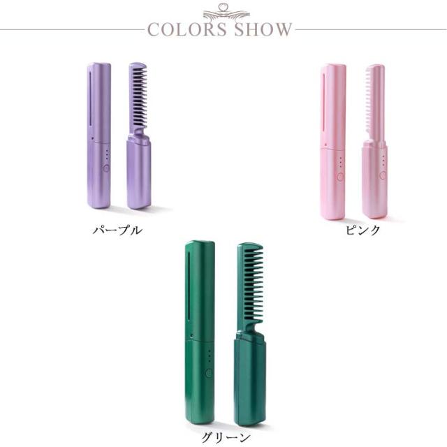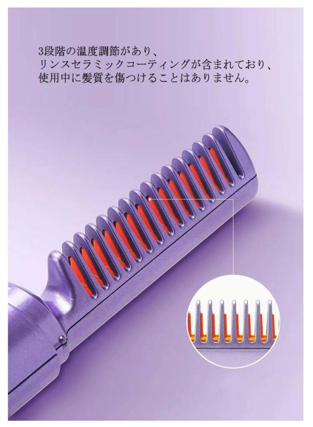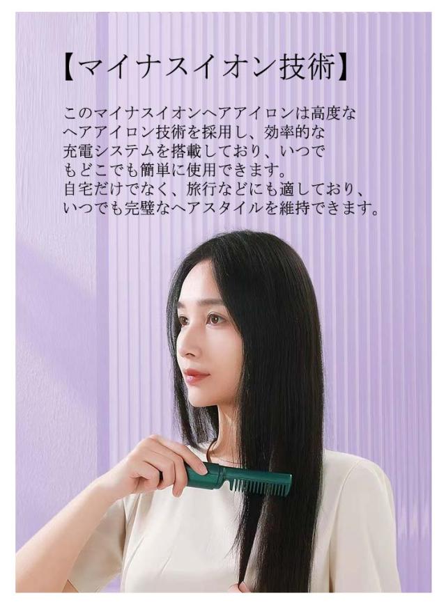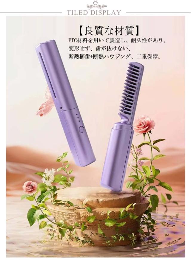 くし型 ミニ ストレートブラシ コードレス ヘアアイロンブラシ マイナスイオン ブラシアイロン カール ヒートブラシ 携帯用 ヒートブラシ ヘアアイロン 2way 連続使用 蓋あり 軽量 コンパクト 3段階温度調節 静電気防止 火傷防止 急速加熱 家庭用