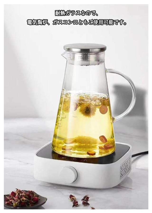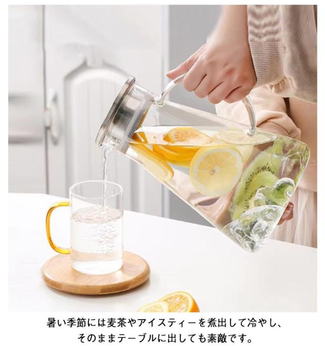 ピッチャー ガラスピッチャー 1900ml 1500ml 麦茶ポット 蓋付き ティーポット 耐熱 冷蔵庫 大容量 冷水ポット 洗いやすい 冷水筒 麦茶入れ ガラスピッチャー 紅茶ポット やかん 直火対応 電気ケトル対応 洗いやすい 送料無料