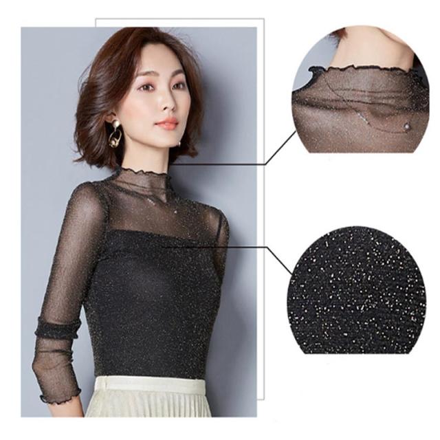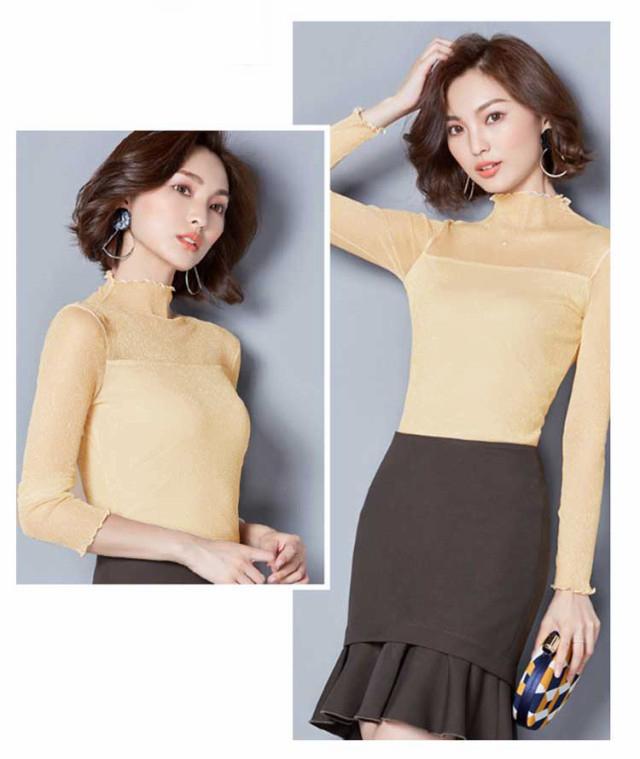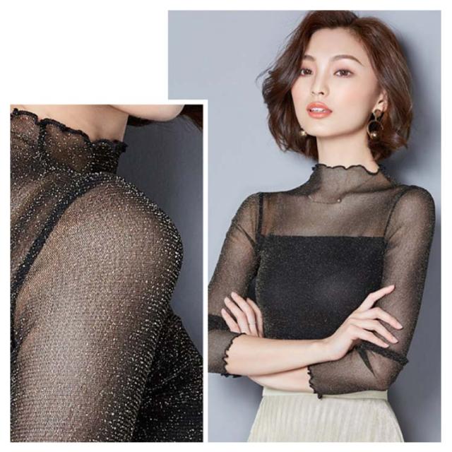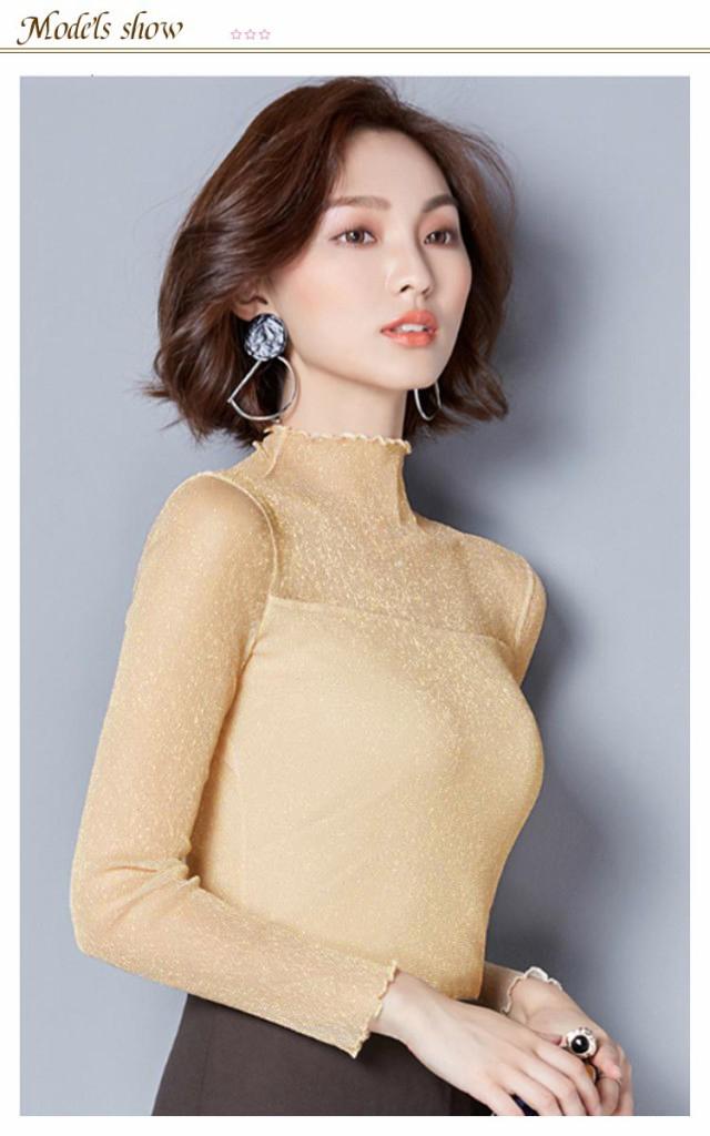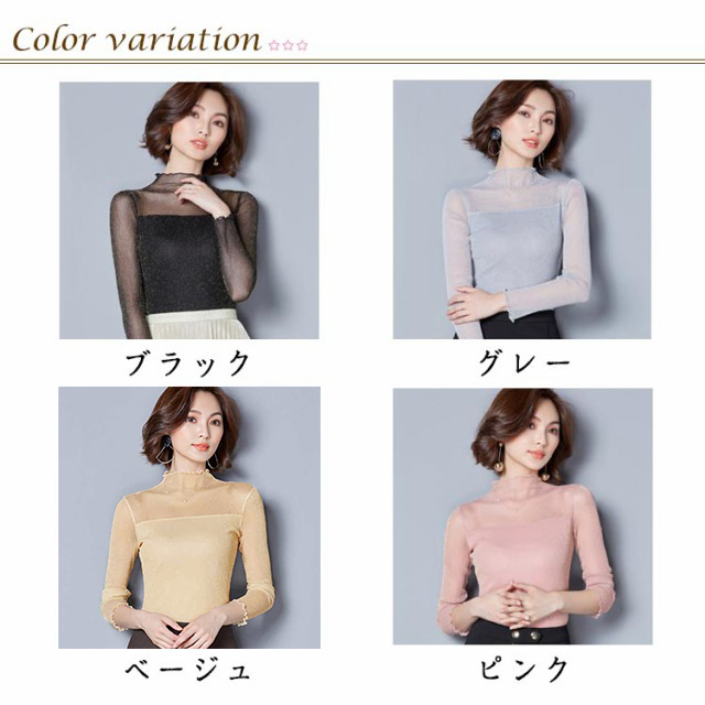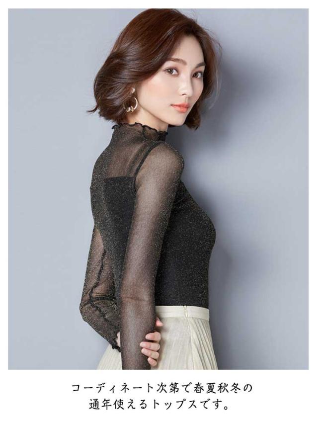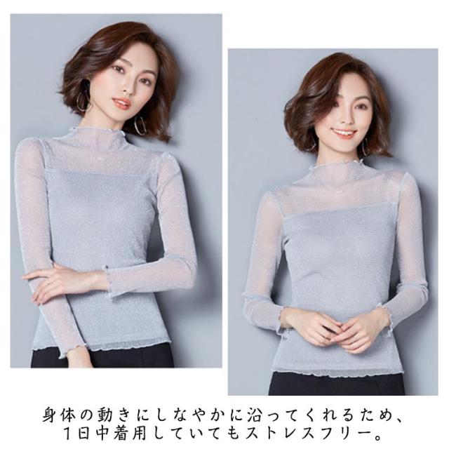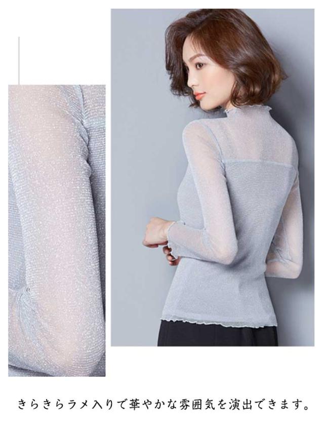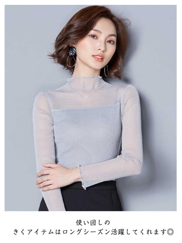 シアー トップス レディース インナー ハイネック きらきら ラメ シアートップス メロウ 長袖 レイヤード 着やせ 春 夏 秋 冬