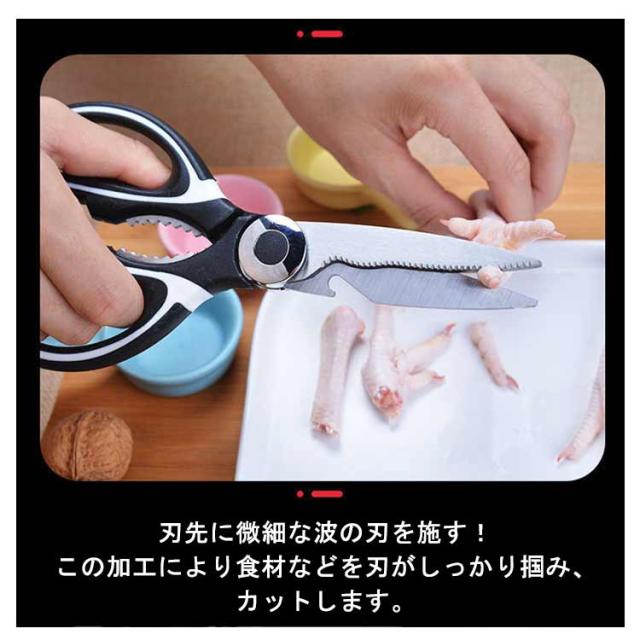 キッチンバサミ 料理バサミ 魚 万能ハサミ 錆びない 調理用 料理用 食洗機対応 キッチン用 多機能 ギザギザ 栓抜き 鶏肉 キッチンバサミ カニ 鱗取り 蓋開け 肉切り 家庭用