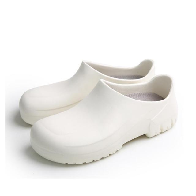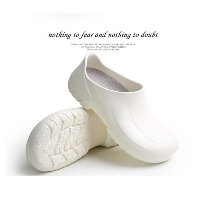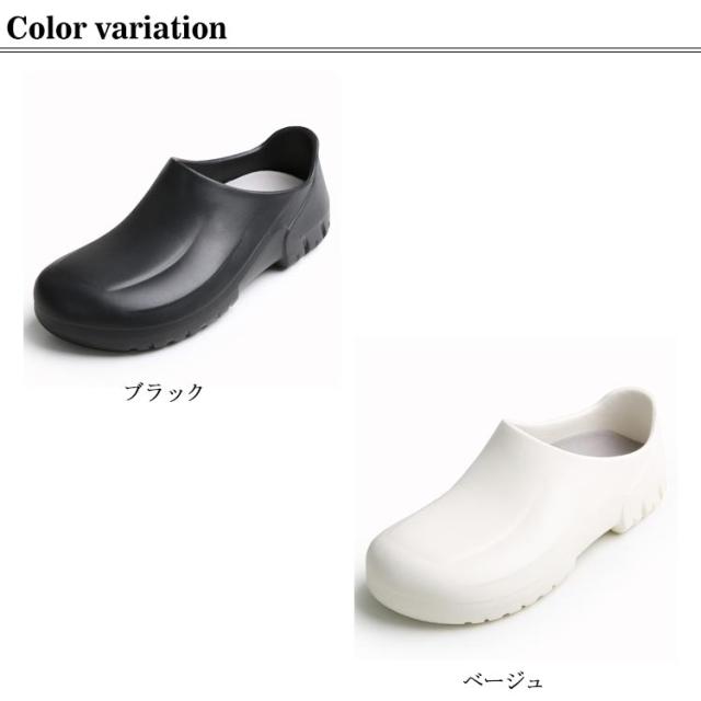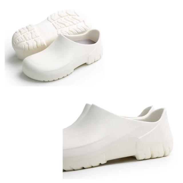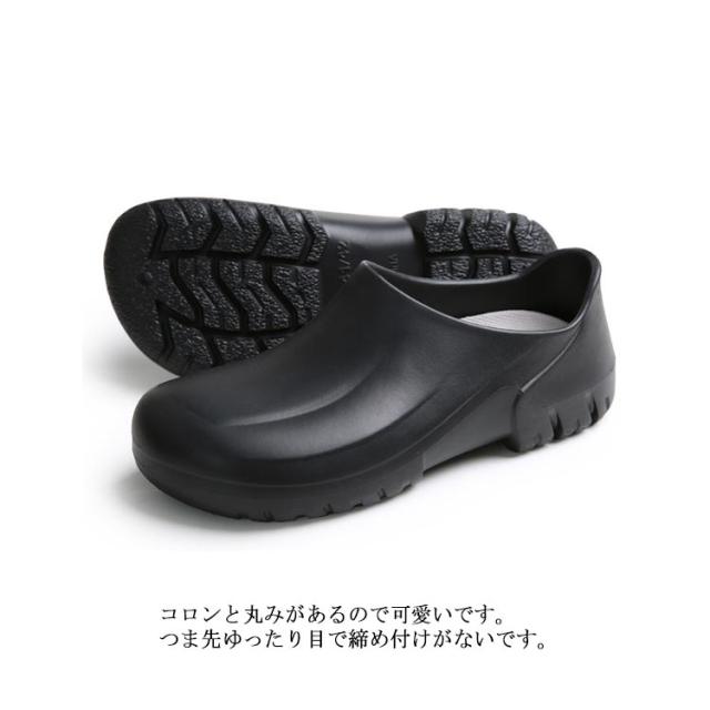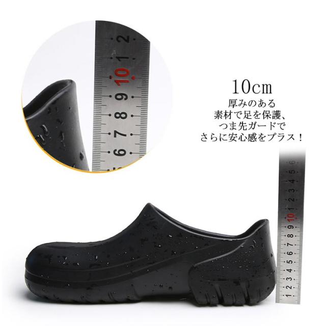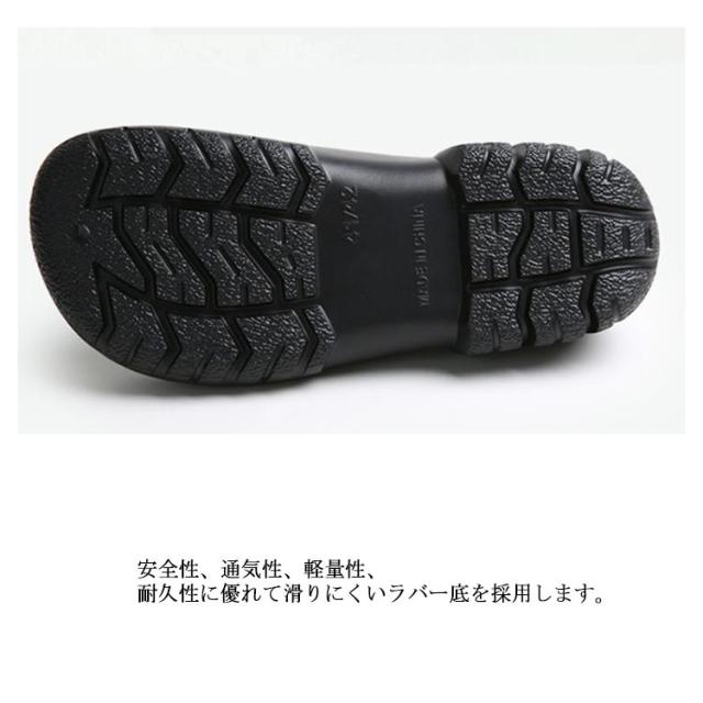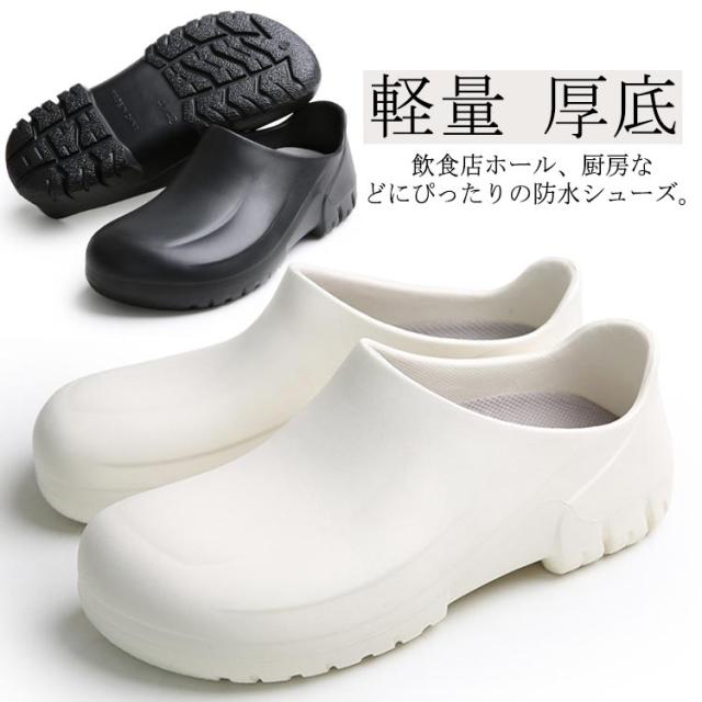 | 飲食店ホール、厨房などにぴったりの防水シューズ。 紐がないので仕事中脱ぎ履きがしやすいです。 コロンと丸みがあるので可愛いです。 つま先ゆったり目で締め付けがないです。 防水防油機能のあるEVA素材を採用しているため、油や汚れが付着しても拭き取りやすく、常に清潔な状態を保てる。 厚みのある素材で足を保護、つま先ガードでさらに安心感をプラス! 安全性、通気性、軽量性、耐久性に優れて滑りにくいラバー底を採用します。 シンプルなデザインなので男女兼用の一足。 | |