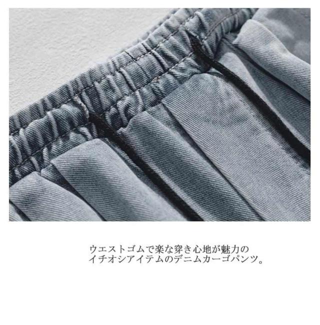| 穿けばわかる!ジーンズの王道! ウエストゴムで楽な穿き心地が魅力のイチオシアイテムのデニムカーゴパンツ。 全体的にややゆったりゆとりをもたせたデザインに仕上がります。 生地感は厚過ぎず、薄過ぎないのでオールシーズン活躍してくれ、かつしっかりしたデニム素材を使用し、 手触りも良い。 とても合わせやすく、トレンド のストリート系ファッションや大人きれいめやカジュアルなアメカジ系の装いにも相性が抜群。 | |