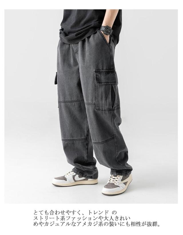 バギーパンツ ミリタリー デニム デニムパンツ 大きいサイズ ワークパンツ デニム 大きめ ゆったり ワイドパンツ カーゴパンツ パンツ メンズ 作業着 作業ズボン カジュアル ダンス衣装 ヒップホップ